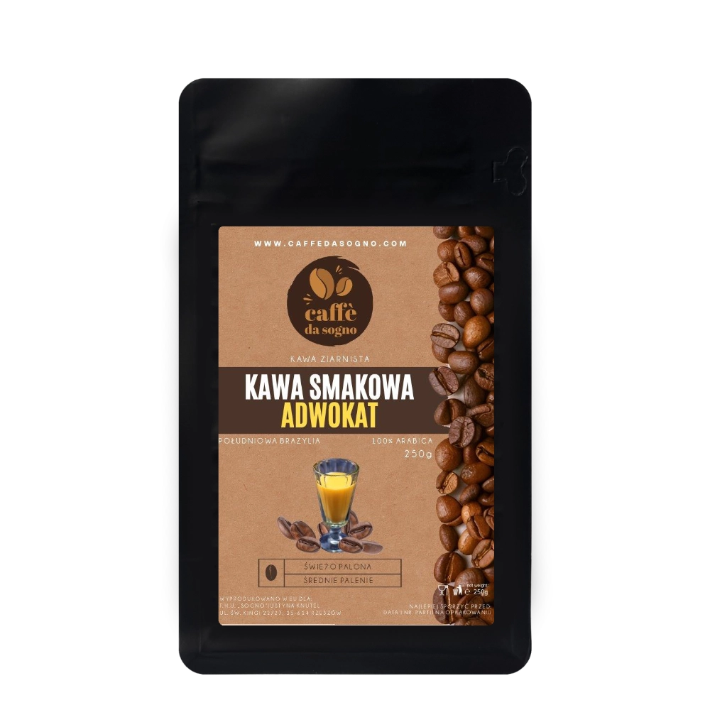 Kawa ziarnista o smaku adwokatu w opakowaniu 250g. Kawa świeżo palona 100% arabica.